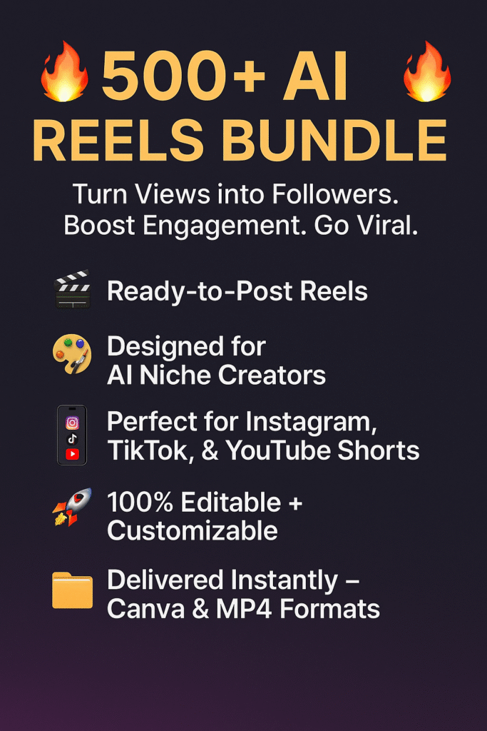 тАЬAI Reels Bundle рдиреЗ рдореЗрд░рд╛ рдХрдВрдЯреЗрдВрдЯ рдХреНрд░рд┐рдПрд╢рди рдмрд╣реБрдд рдЖрд╕рд╛рди рдХрд░ рджрд┐рдпрд╛ред рдЕрдм рдореБрдЭреЗ рдЯреНрд░реЗрдВрдбрд┐рдВрдЧ рд░реАрд▓реНрд╕ рдХреЗ рд▓рд┐рдП рдЯреЗрдВрд╢рди рдирд╣реАрдВ рд▓реЗрдиреА рдкрдбрд╝рддреАред рд╕рдм рдХреБрдЫ рдЗрд╕рдореЗрдВ рдкрд╣рд▓реЗ рд╕реЗ рдореМрдЬреВрдж рд╣реИредтАЭ
